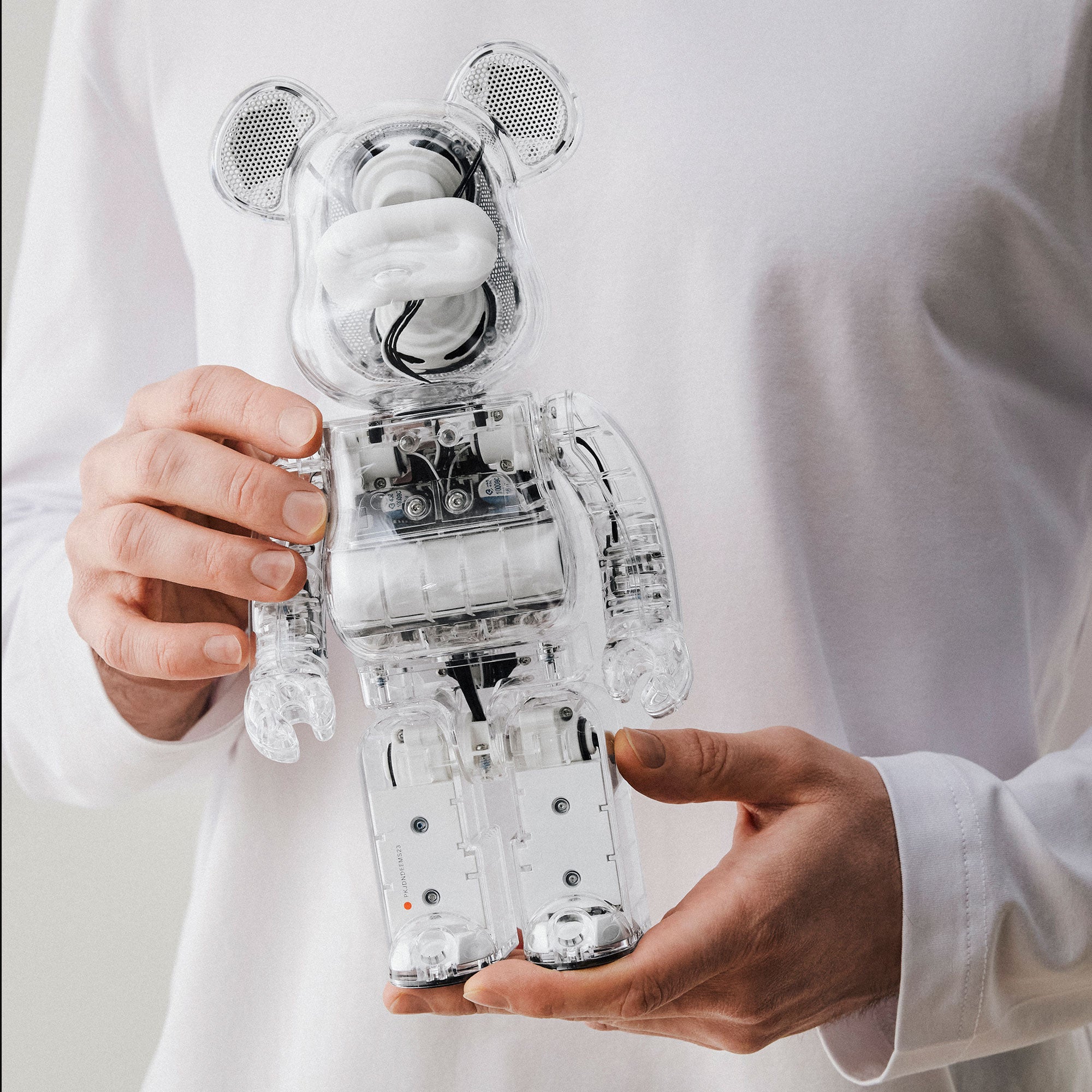 MEDICOM TOY collaborated with Rinaro Isodynamics to create the first-ever BE@RBRICK AUDIO Bluetooth Speaker in 400% size. Over 20,000 engineering hours and 214 custom parts went into designing the BE@RBRICK AUDIO 400% Portable Bluetooth Speaker, staying true to the original BE@RBRICK while delivering exceptional sound quality.